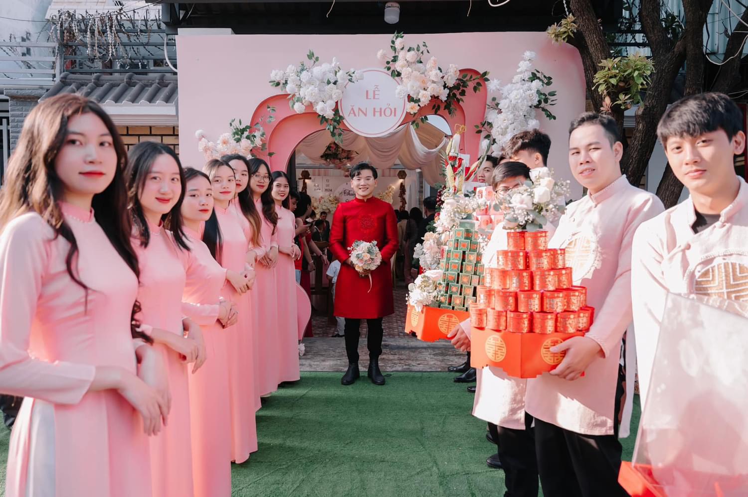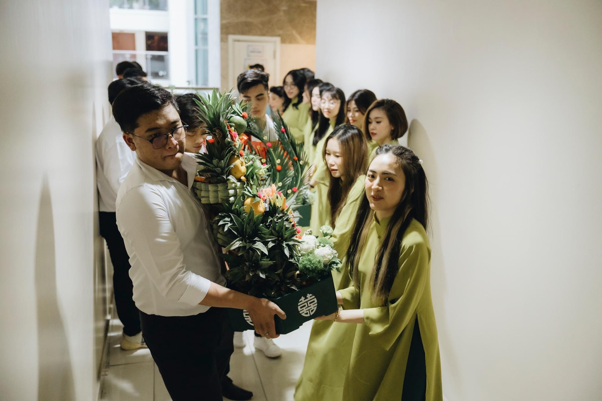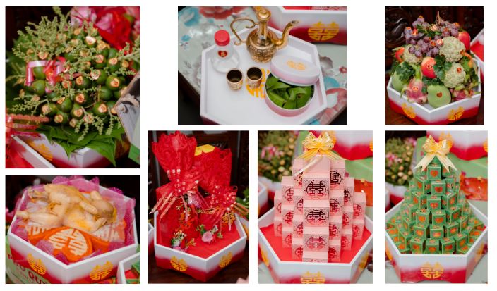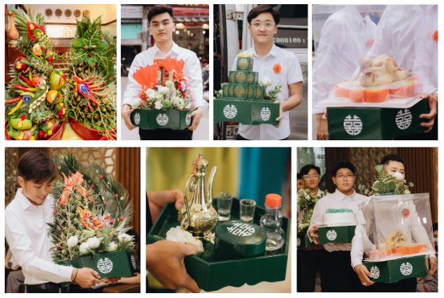 Mâm quả này thường bao gồm cặp nhẫn cưới, tiền và vòng vàng,… thể hiện sự yêu quý và tôn trọng của gia đình chú rể đối với con dâu.