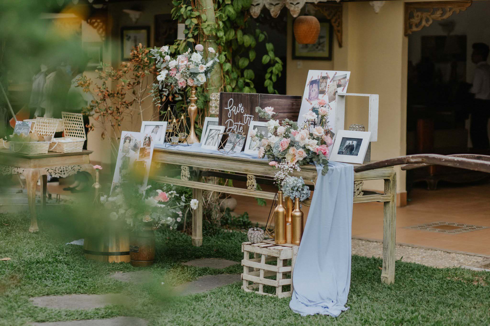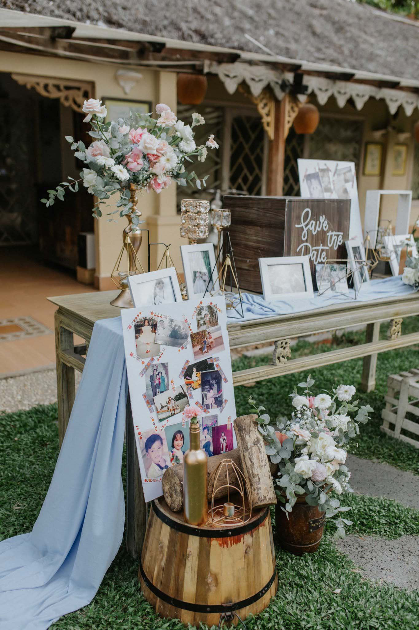 2.Các mẫu Bàn Gallery đẹp đi kèm với style backdrop chụp hình ngoài trời - tone mộc