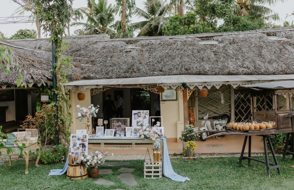 Bàn Gallery phong cách ngoài trời được trang trí bằng các cây cỏ, hoa tươi, đèn trang trí và các chi tiết tự nhiên khác mang đến một không gian trưng bày độc đáo và gần gũi. Các bức ảnh và kỷ vật quý giá của cặp đôi có thể được trưng bày một cách sáng tạo trên bàn Gallery, tạo nên một khung cảnh lãng mạn. Với sự sáng tạo và tinh tế trong trang trí, bàn Gallery ngoài trời tạo nên không gian cưới độc đáo và ghi lại ấn tượng sâu sắc trong lòng khách mời.