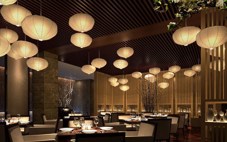 Hiện nay, hệ thống đèn trang trí có sự đa dạng về kiểu dáng và màu sắc. Ví dụ, trong trang trí nhà hàng Nhật Bản, sử dụng đèn lồng thả màu vàng nhạt hoặc đỏ để tạo cảm giác ấm cúng và thu hút. Trong khi đó, với nhà hàng phong cách hiện đại nên chọn những mẫu đèn nhỏ với kiểu dáng đa dạng để tạo không gian đẹp và hấp dẫn. Ngoài ra, lựa chọn lắp đặt đèn thả theo chiều dài đồng đều hoặc đan xen cao thấp để tạo nên một không gian nhà hàng tinh tế.