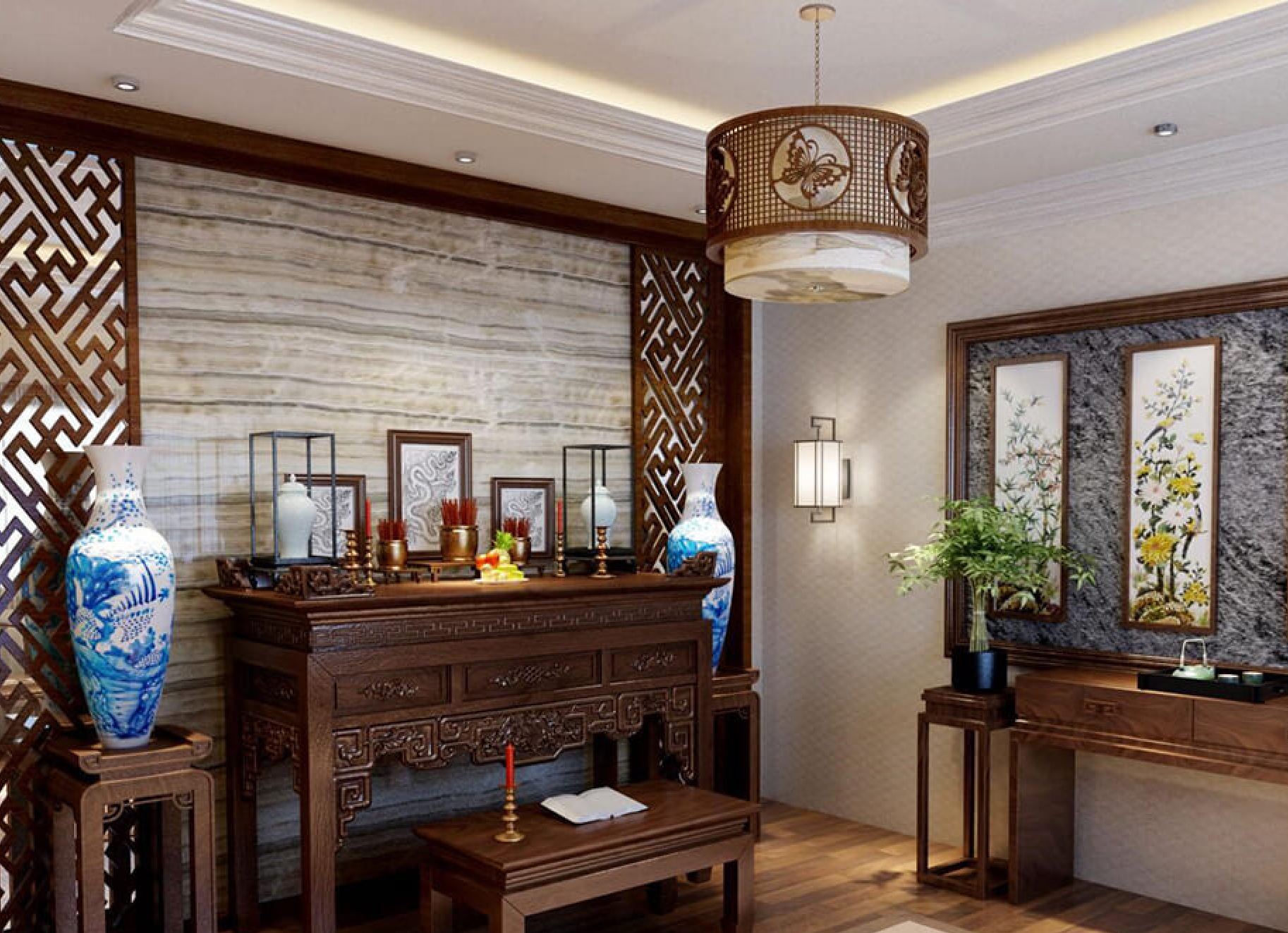 ⭐Nếu phòng thờ được sơn màu sáng, không cần lắp quá nhiều đèn. Điều này sẽ giữ tính trang nghiêm của không gian. Thay vào đó, chỉ cần lắp đặt 2-3 loại đèn để tô điểm cho phòng thờ gia đình.