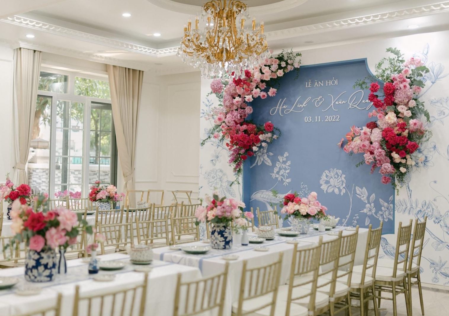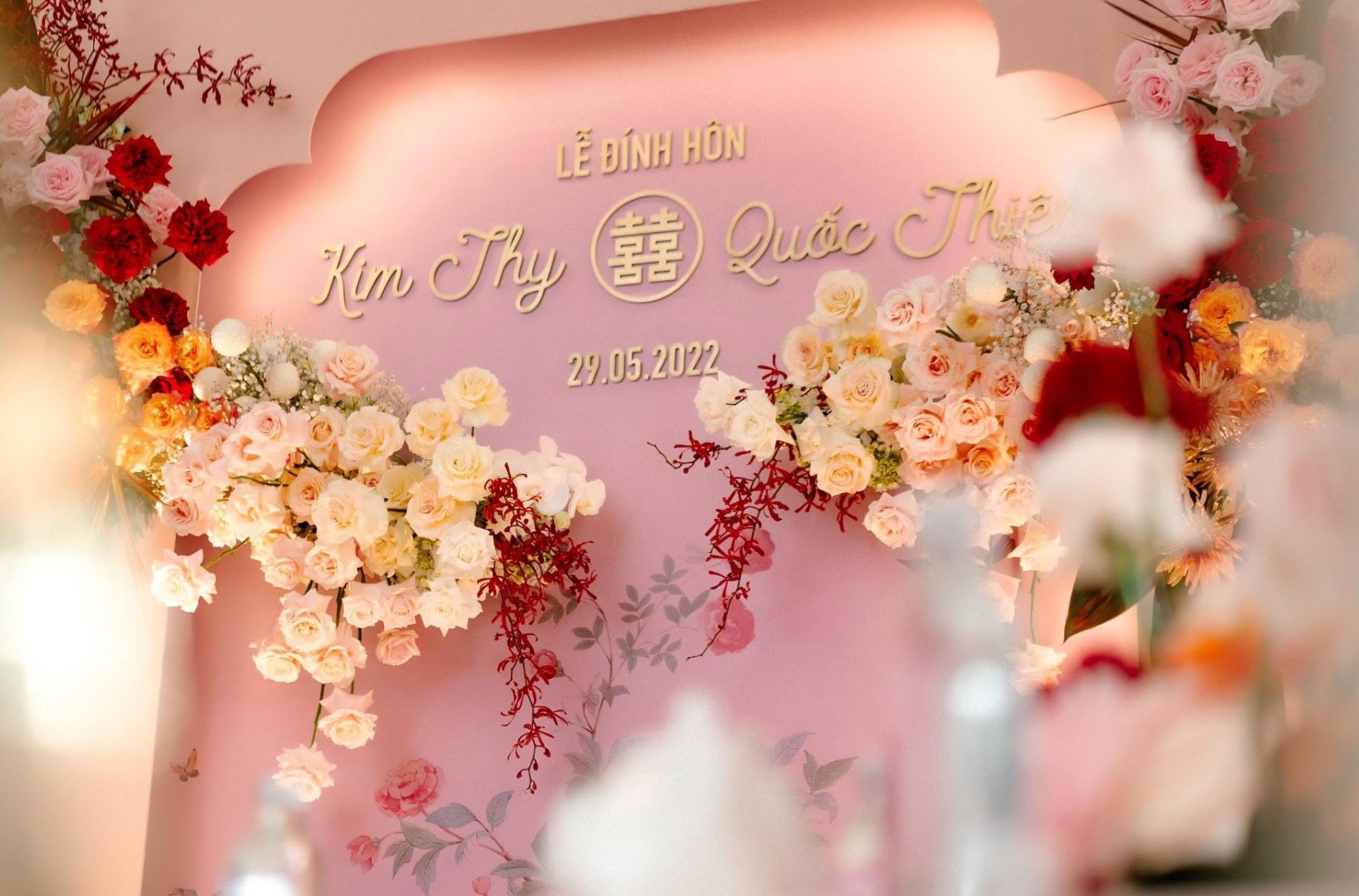 Phong cách trang trí ngọt ngào thường sử dụng tone màu pastel nhẹ nhàng như hồng baby, trắng sữa, tím nhạt. Trang trí gia tiên đám hỏi theo phong cách này, cô dâu chú rể có thể sử dụng chữ Hỷ cùng tông màu hoặc màu vàng hồng để tăng sự nổi bật.