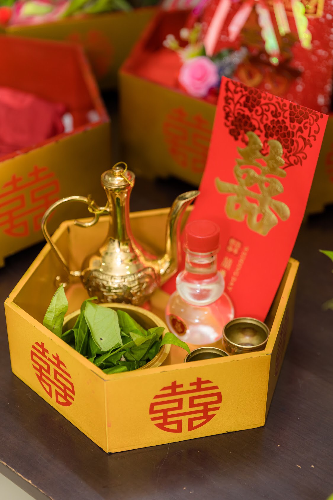 3 tráp: Mâm trầu cau (là lễ vật bắt buộc), mâm chè và mâm hạt sen.