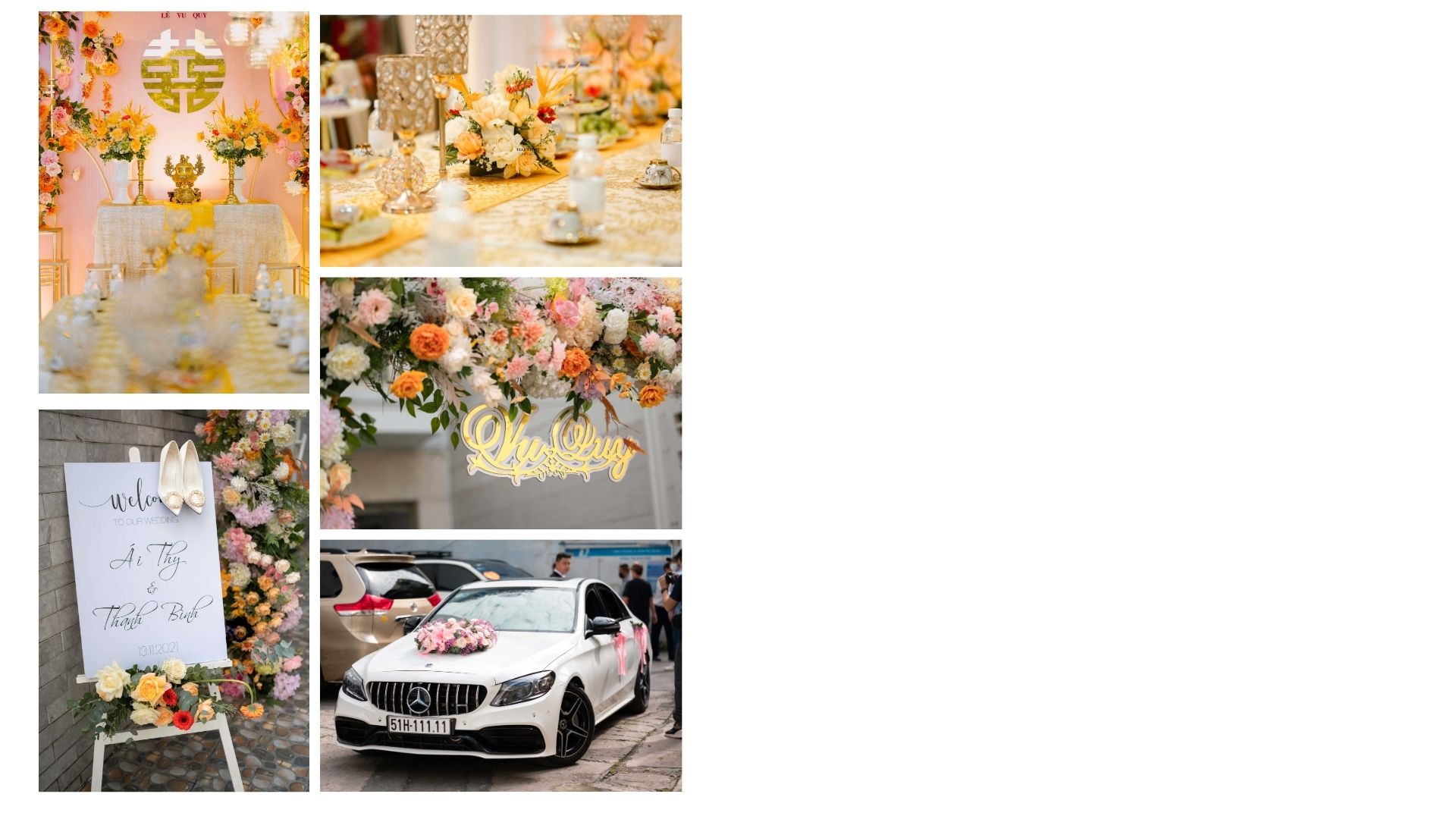 - Đôn để quả: Sử dụng 6 đôn để quả hình vuông bằng sắt màu vàng đồng sang trọng.