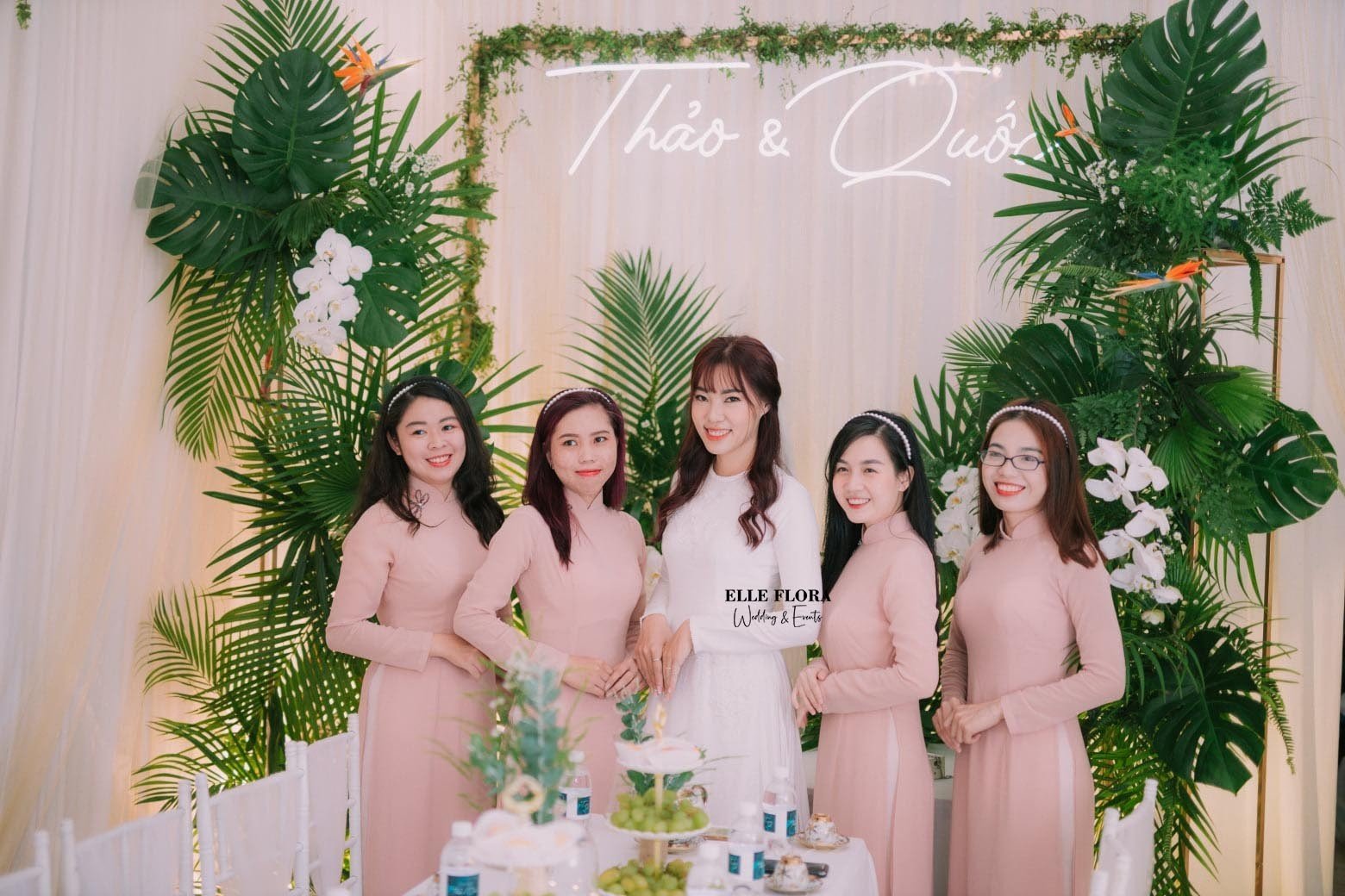 Elle Flora Wedding & Event là đơn vị trang trí tiệc cưới trọn gói từ lễ gia tiên & trang trí backdrop chụp hình tại nhà hàng.