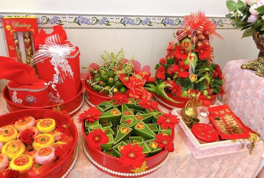 Theo truyền thống cha ông ta để lại, mâm quả cưới hỏi cần chuẩn bị một mâm quả bánh xu xuê với 105 chiếc bánh mang ý nghĩa mong cho đôi uyên ương luôn gắn bó ngọt ngào “trăm năm hạnh phúc”.