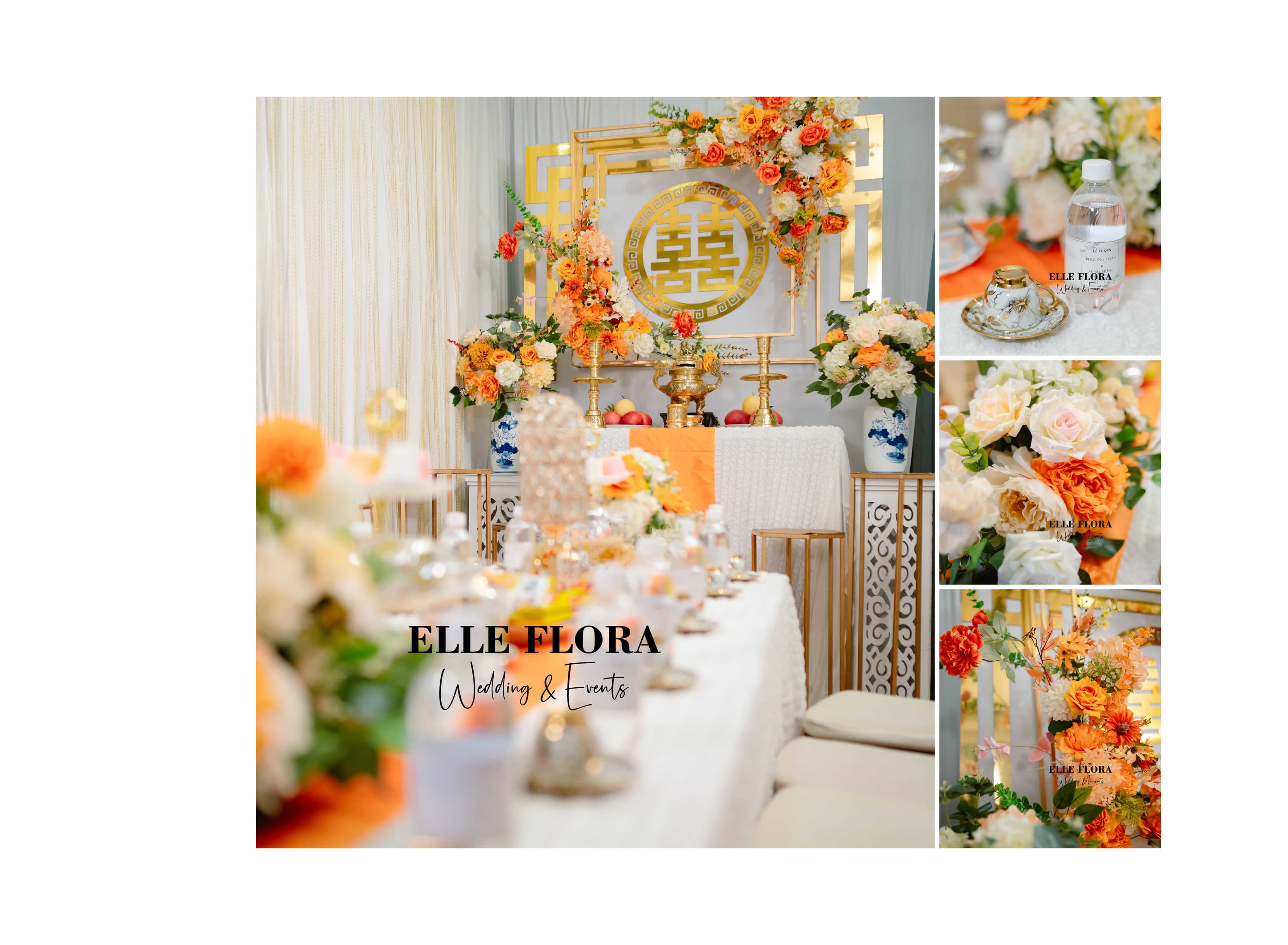 Nếu bạn là một người thích màu cam, chắc chắn bạn sẽ không thể bỏ qua gói trang trí gia tiên tone Cam này. Hảy liên hệ ngày Team Elle để được khảo sát & tư vẫn miễn phí tại nhà. Chúng tôi rất vinh dự được là người bạn đồng hành đáng tin cậy trong hành trình trang trí tiệc cưới của bạn. Hãy đến chia sẻ ý tưởng của bạn với Elle và hợp tác với chúng tôi để biến những giấc mơ này thành hiện thực.