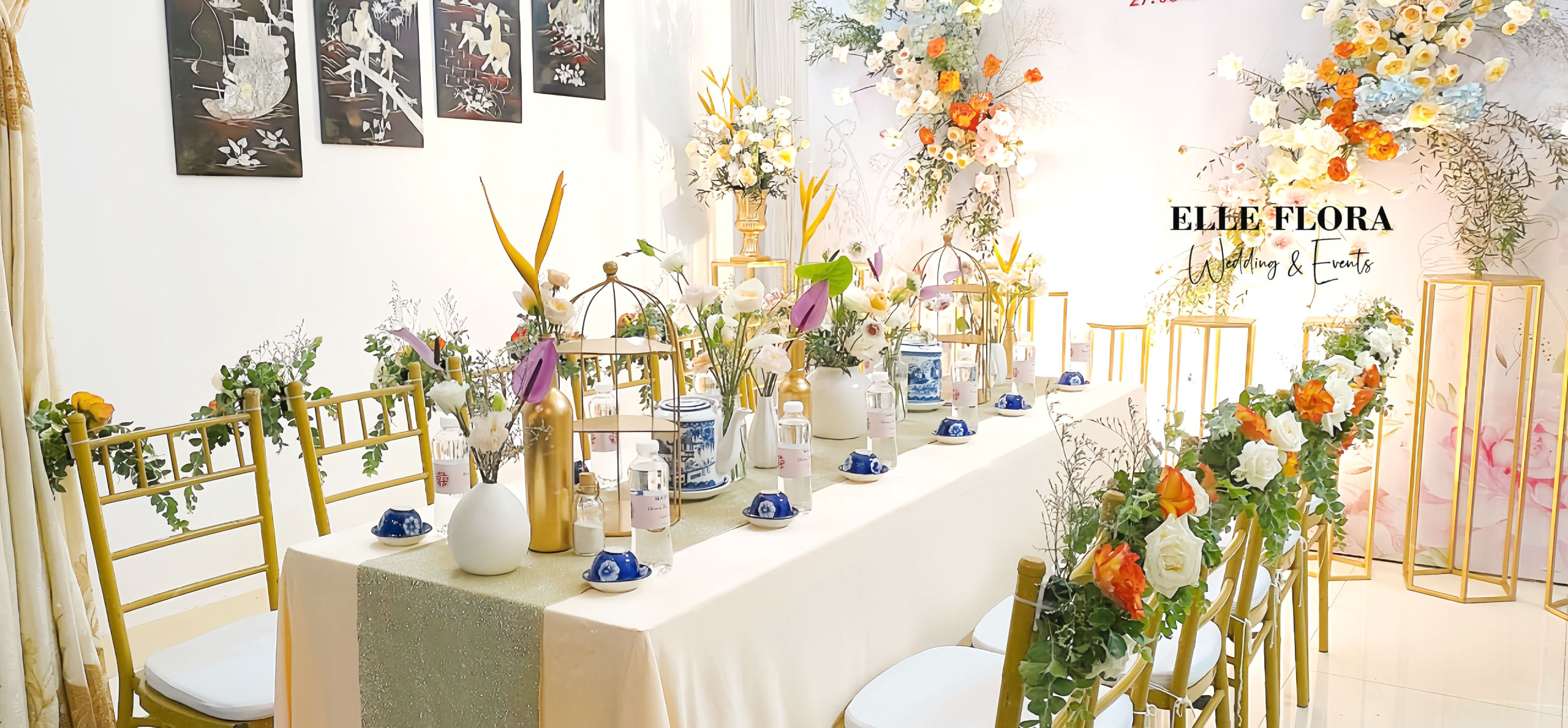 Chúng mình hân hạnh được là người bạn đồng hành đáng tin cậy trong hành trình trang trí tiệc cưới của bạn. Hãy đến và chia sẻ với Elle những ý tưởng của bạn, và cùng tụi mình biến những giấc mơ ấy thành hiện thực nhé.