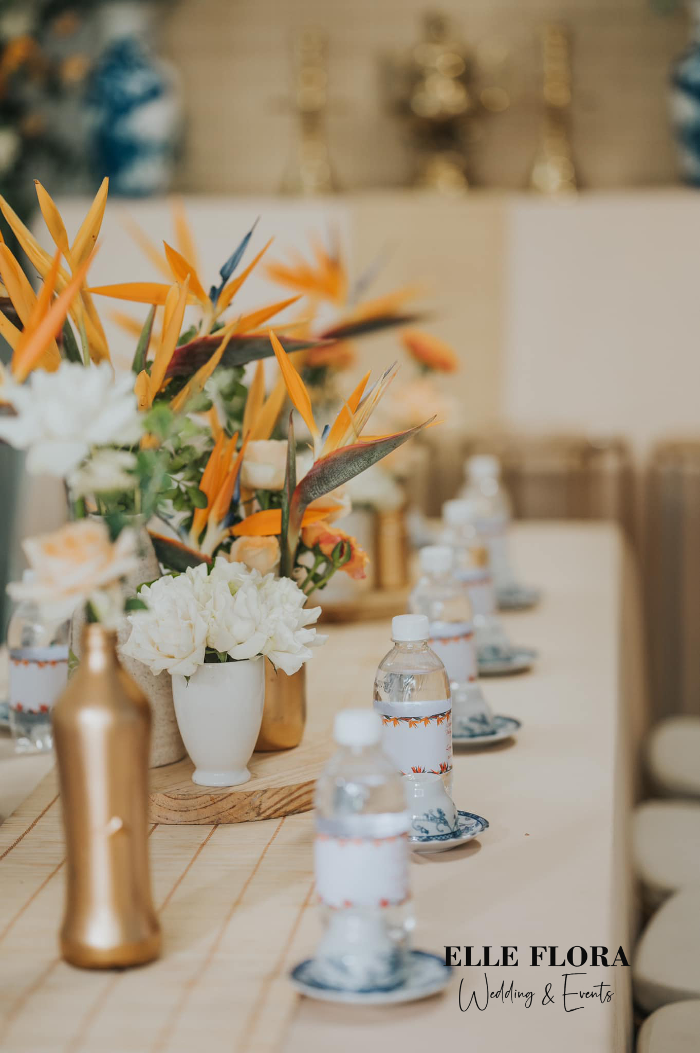 Trang trí gia tiên với tone cam của ELLE Flora không chỉ là một lựa chọn táo bạo và mới lạ mà còn rất hợp với những gia đình yêu thích sự tươi trẻ và năng động, muốn mang đến không gian lễ cưới đầy màu sắc và ấn tượng. Tone cam còn mang ý nghĩa của sự may mắn, phát triển và thành công, rất phù hợp cho những cặp đôi muốn khởi đầu cuộc sống hôn nhân với nhiều niềm vui và thịnh vượng.