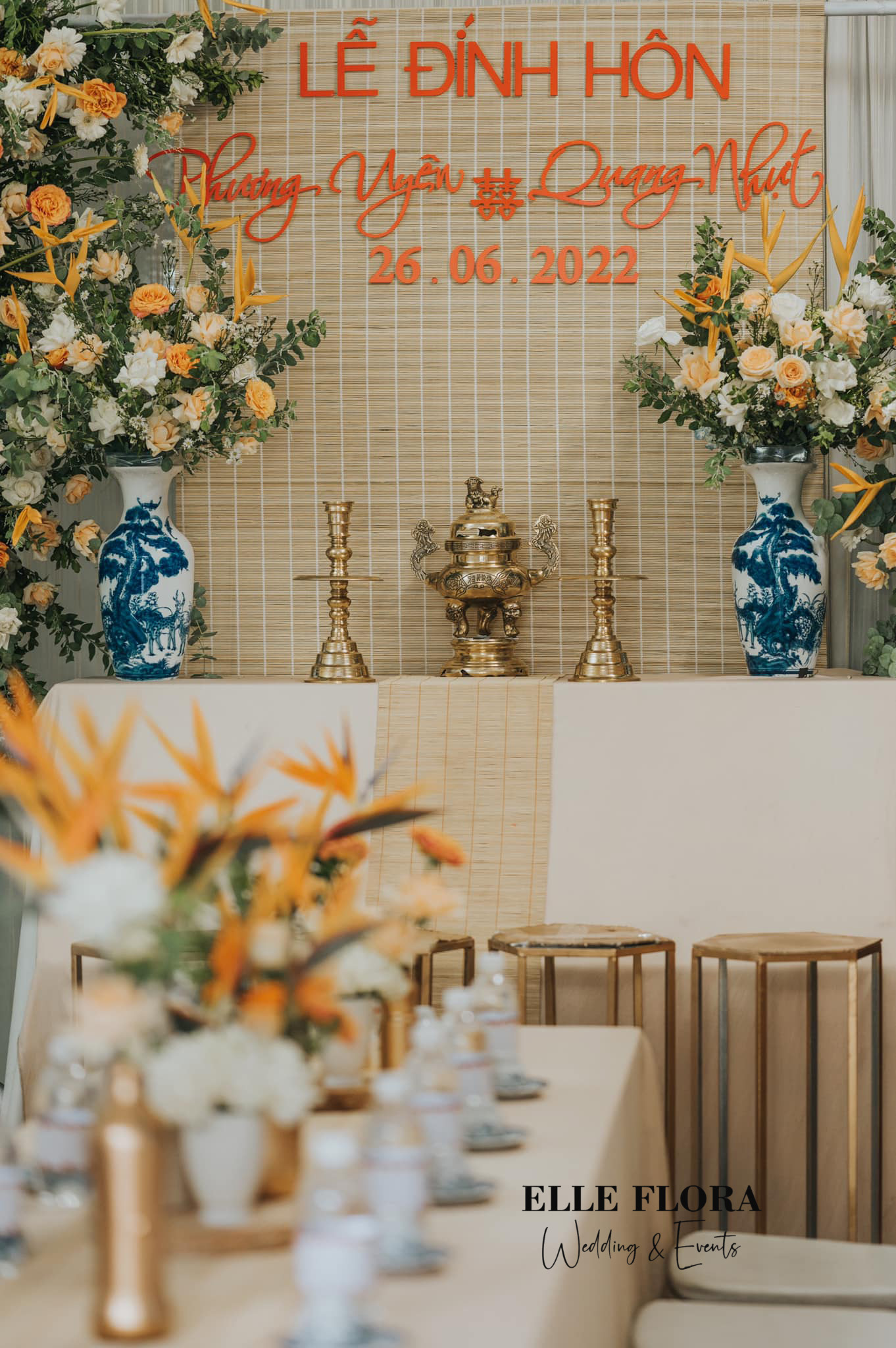 Nhìn chung, trang trí gia tiên với hoa tươi tone cam của ELLE Flora là sự kết hợp hoàn hảo giữa truyền thống và hiện đại, giữa sự trang trọng và năng lượng tích cực, giúp không gian thờ cúng trở thành điểm nhấn quan trọng trong ngày cưới.